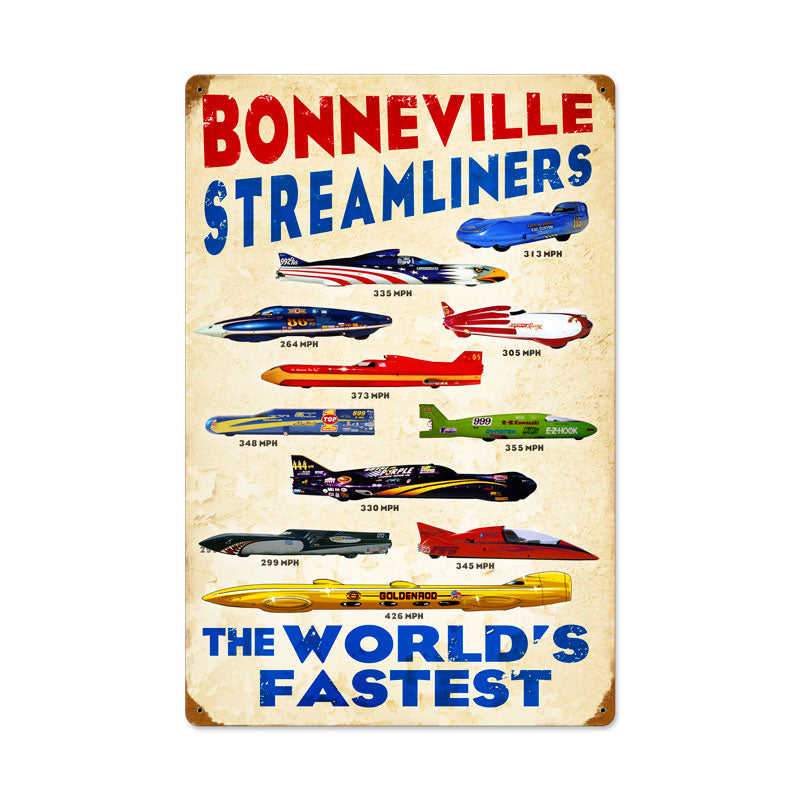 From the Classic Motorcycle licensed collection this Worlds Fastest #1 Vintage Metal Sign measures 16 inches by 24 inches and weighs in at 4 lb(s). This Vintage Metal Sign is hand made in the USA using heavy gauge American steel.