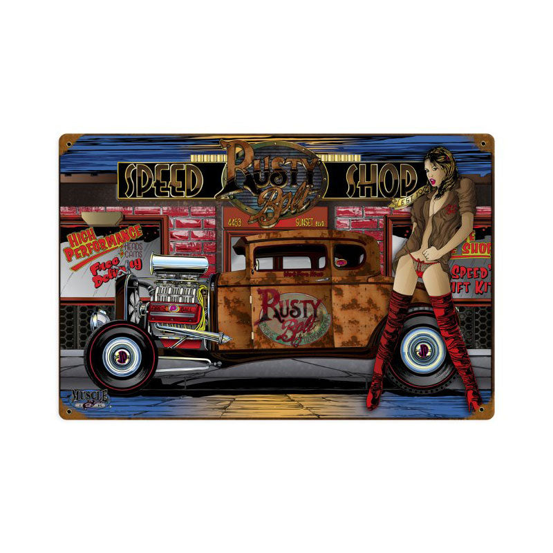 From the Muscle N Ink licensed collection this Rusty Bolt Vintage Metal Sign measures 18 inches by 12 inches and weighs in at 2 lb(s). This Vintage Metal Sign is hand made in the USA using heavy gauge American steel.