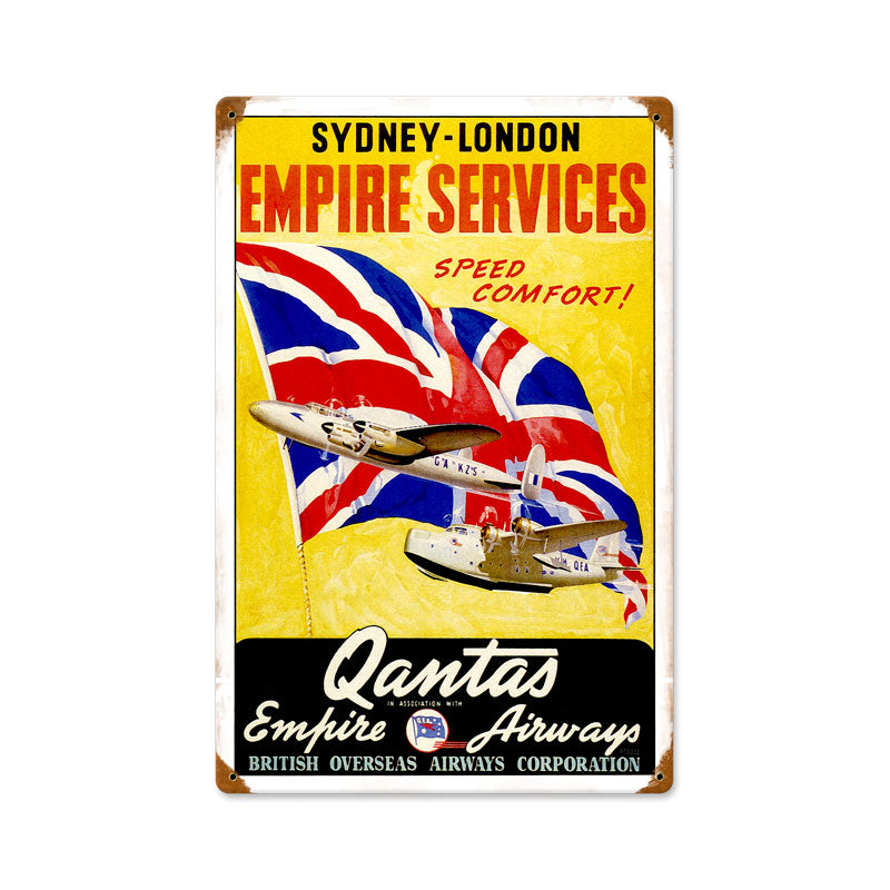 From the Past Time Signs licensed collection this Qantas Airlines Vintage Metal Sign measures 12 inches by 18 inches and weighs in at 2 lb(s). This Vintage Metal Sign is hand made in the USA using heavy gauge American steel.