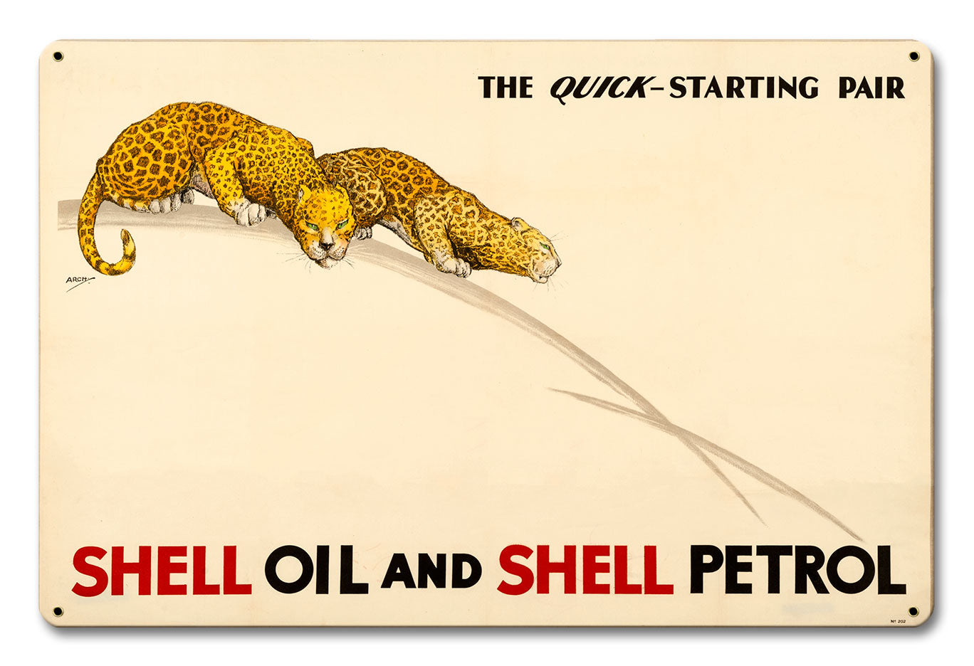 18 X 12 SATIN METAL SIGN - The Quick Starting Pair Shell Oil Cats