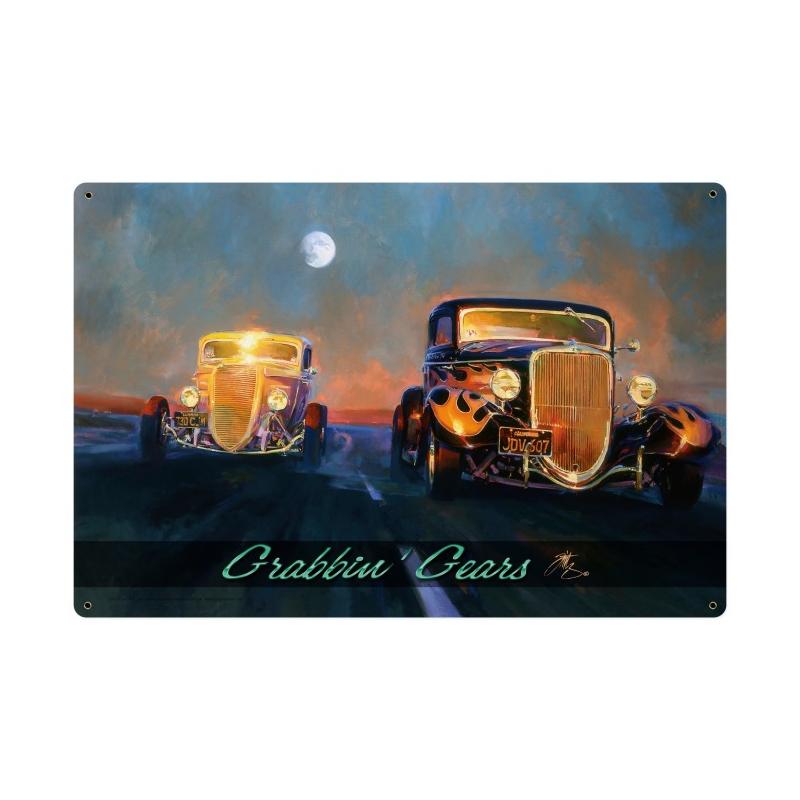 From the Tom Fritz licensed collection this Grabbin Gears Metal Sign measures 36 inches by 24 inches and weighs in at 7 lb(s). This Metal Sign is hand made in the USA using heavy gauge American steel.