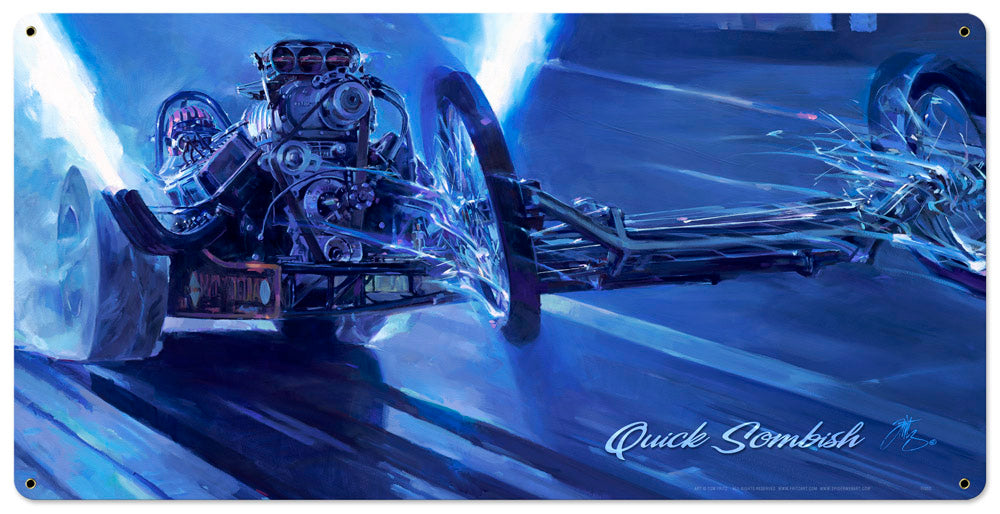From the Tom Fritz licensed collection this Quick Sombish Large Metal Sign measures 36 inches by 18 inches and weighs in at 6 lb(s). This Metal Sign is hand made in the USA using heavy gauge American steel.